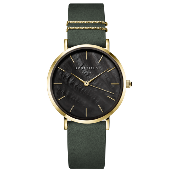 The West Village collection is inspired by the iconic New York neighborhood. The green velvety nubuck leather straps give the watch a city character, with chic metal rings that keep it classy.