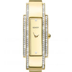 Be bold in gold this season. Featuring a gold plated case enclosing a gold toned dial, this extraordinary timepiece holds a total of 112 Swarovski® crystals. Fastened with a gold plated stainless steel bracelet, the watch is water resistant to 30 metres. What’s not to love?