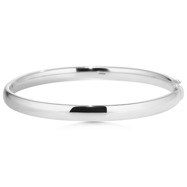 Keep it classic with a silver bangle – our everyday jewellery essential. Designed with a hinged side clasp for easy wear, this 6mm oval bangle design is crafted from sterling silver. Wear solo or pair with chunky bracelets to create a bold arm stack.