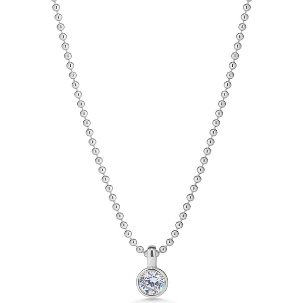 The perfect pendant to elevate your every day. Crafted from sterling silver, the contemporary bead link chain is finished with a bezel set cubic zirconia, faceted to catch the light. Wear solo or layer with a choker and chains.