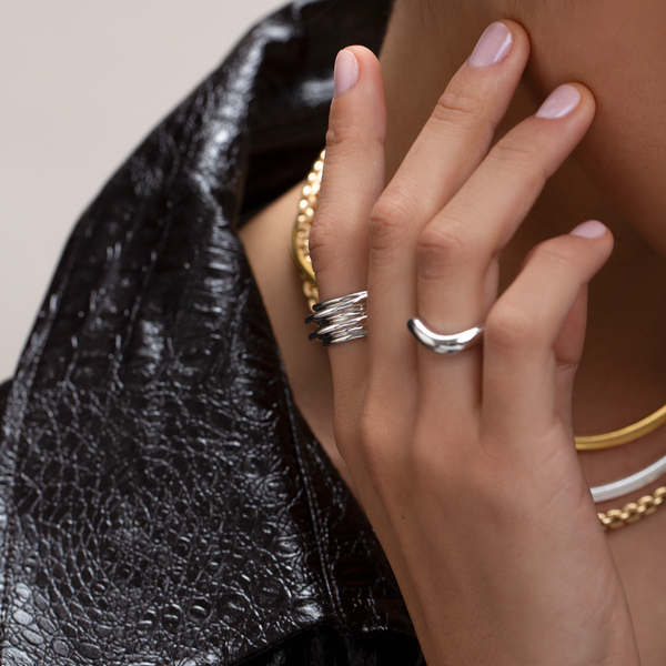 Crafted from sterling silver, this contemporary chunky ring features signature ridge detailing for a ripple effect. Let it take centre stage or style with other rings for a more maximalist look.