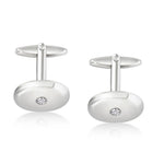 Crafted from sterling silver, these handsome oval cufflinks feature a single, glistening cubic zirconia stone. Secured with a t-bar fitting, they are the perfect accessory choice to elevate your formal wear. All of our cufflinks arrive in a Ryan Thomas Jewellers cufflinks box for presentation.