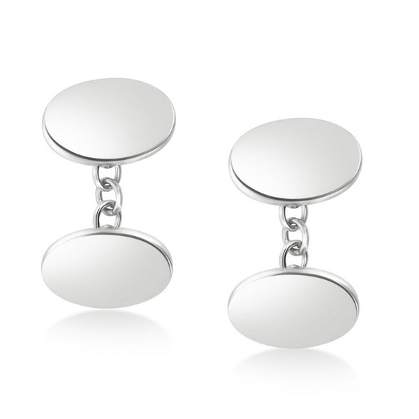 A strikingly simple design, our oval silver cufflinks are the ideal complement to both your workwear and formalwear wardrobes. Crafted from solid sterling silver, the smooth discs feature a polished finish.
