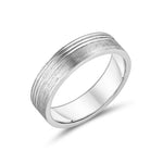 A comfort fit 5mm gent's wedding band. Crafted from sterling silver, the brushed surface is enhanced with three polished offset lines.