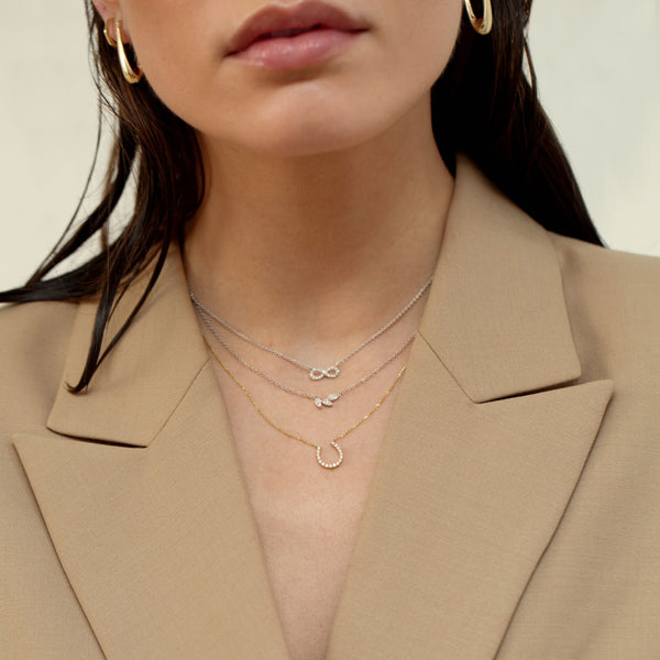 Crafted from 14ct white gold and set with glittering natural diamonds, our Infinity Pendant is a forever layering piece. Keep it for yourself or give as the ultimate gift.