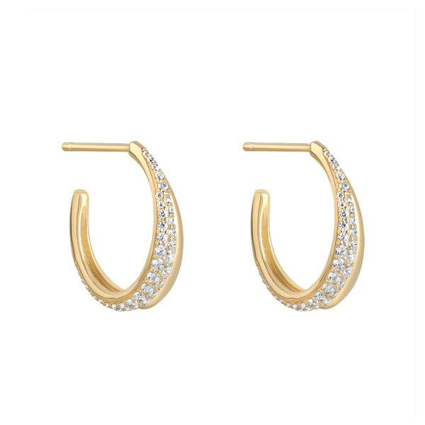 Add some luxe to your outfit with these gorgeous cubic zirconia hoops. They're a stunning piece that can be worn on their own or layered up with other pieces to create a curated ear look. Crafted from 18ct yellow gold plated on sterling silver, you'll wonder how you ever lived without them.