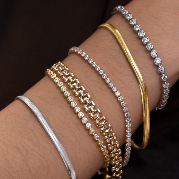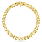 Crafted in Italy from 18ct yellow gold plated on sterling silver, this bracelet features flat gold links - the perfect piece to layer with other bangles and bracelets. We love it paired with the matching necklace.